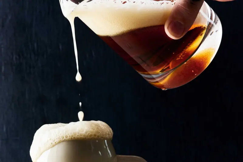 (als Läuterbottich eignet sich jeder Topf, Bottich oder Eimer mit einem verschließbaren Auslauf unten; im Inneren des Bottichs über den Auslauf ein Sieb legen; dieses auf Abstandshaltern wie z. B. einem Tortenkühler platzieren und außen herum abdichten, z. B. mit einem Moltontuch.) Bis über das Sieb Wasser mit einer Temperatur von 80 °C vorlegen, dann die Maische daraufgeben. 20 Minuten ruhen lassen. Dann das Abläutern vorsichtig über den Auslaufhahn beginnen (ca. 500 ml/Minute). Solange die Flüssigkeit trüb ist, auffangen und vorsichtig (ggf. mithilfe eines Schaumlöffels) wieder von oben in den Läuterbottich geben. Sobald die Flüssigkeit klar ist, in den Kessel geben. Kurz bevor der „Treberkuchen“ von oben betrachtet im Läuterbottich aus der Flüssigkeit ragt, 2 l Wasser mit einer Temperatur von 80 °C nachgießen, ohne aber den „Treberkuchen“ zu beschädigen (Schaumlöffel). Dies wird solange wiederholt, bis der Kessel zu 90 % gefüllt ist. Sobald der Kessel jedoch zu ⅔ voll ist, die Wärmezufuhr auf die höchste Stufe stellen. Die Flüssigkeit soll 1 Stunde stark kochen. Nach 5 Minuten Kochzeit ¼ des Hopfens hinzugeben. Nach 30 und 55 Minuten jeweils noch ein weiteres ¼ hinzugeben. ⅒ der Flüssigkeit kochend in vorgeheizte Flaschen füllen (randvoll), verschließen und im Keller lagern. Nach 1 Stunde Sud über einen Seiher (am besten mit eingelegtem Moltontuch) abfiltrieren. In die abgeseihte Flüssigkeit das letzte ¼ Hopfen geben, Sud auf 8 Grad Celsius abkühlen und die gute belüftete (aufgeschüttelte) Hefe unter kräftigem Rühren hinzugeben.